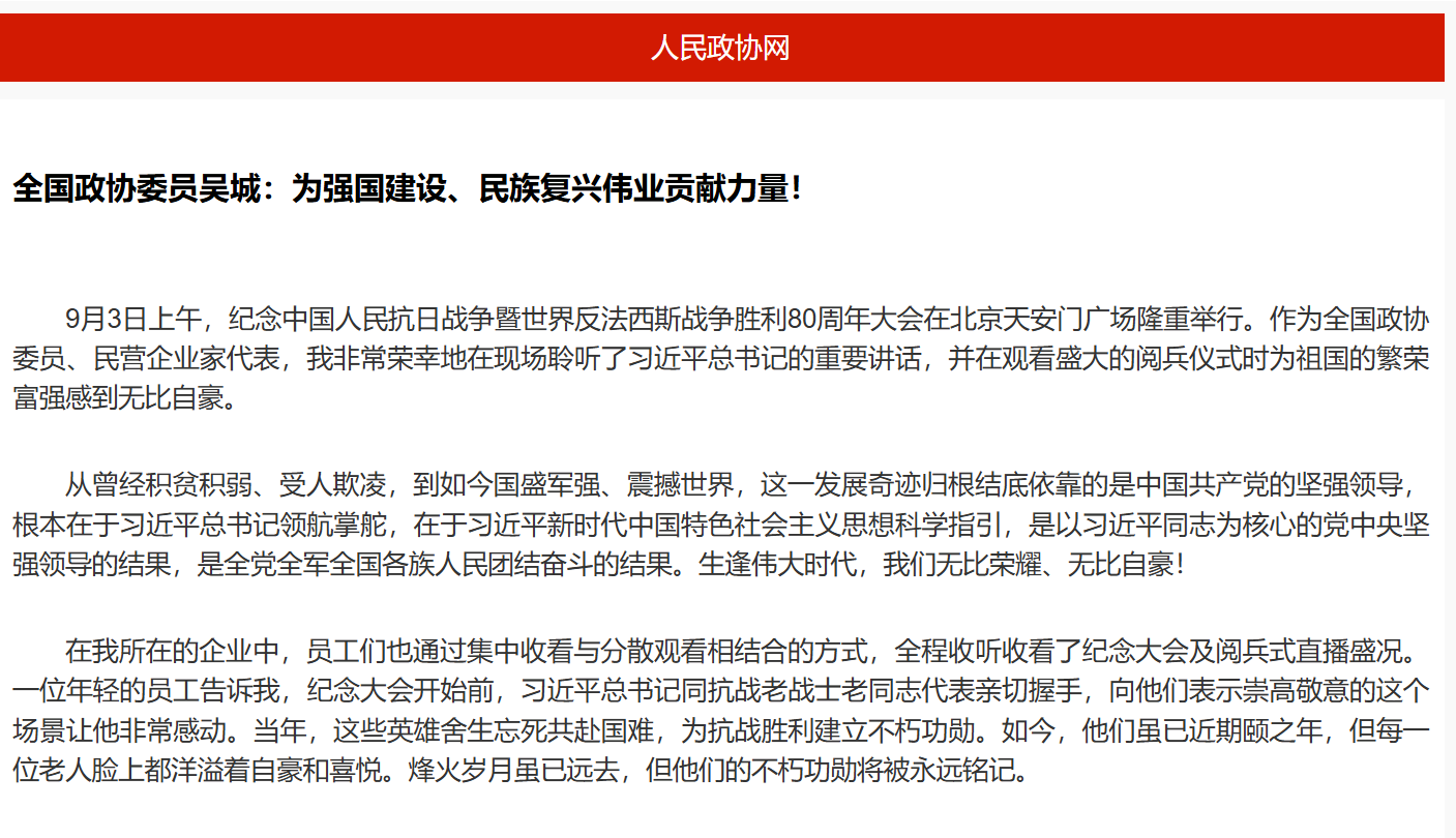 全國政協(xié)委員吳城:為強國建設、民族復興偉業(yè)貢獻力量!